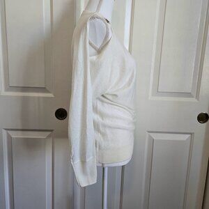 NWT Women's New York & Company Cream long sleeve scoop neck with metal bar accents, pull over sweater with cut out shoulders, and cuff wrists.