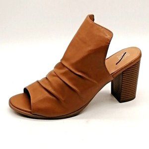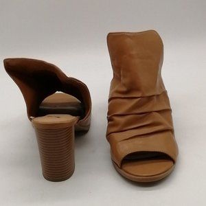 NY&C Womens Block Heel Slouch Slide Mule Sandal Cushioned Insole Tan Sz 10