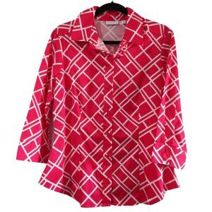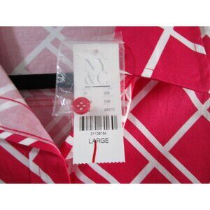 NY&C Womens Large Fuchsia White Geometric Button-Up Shirt New