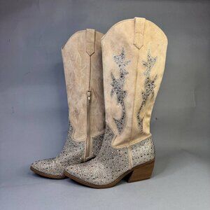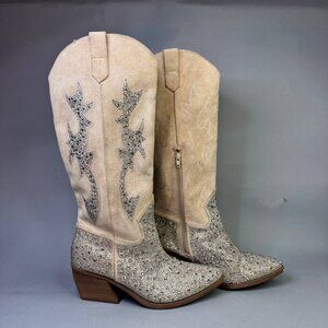 NYC madden girl Apple Women's SIZE 8 Embellished Western Boots Color Sand Multi