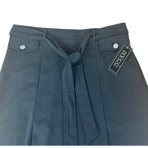 NYCC Black Pleated A-Line Skirt With Rhinestone Buttons & Waist Tie Size Medium