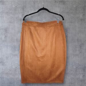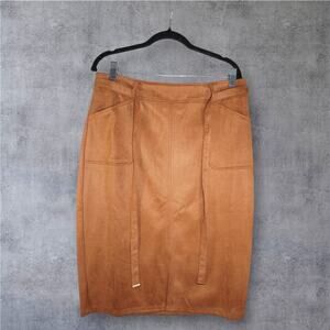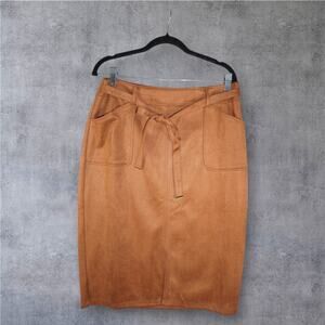 NYCC Faux Suede Pocketed Pencil Skirt | Size M | Camel Brown | Belted High Waist