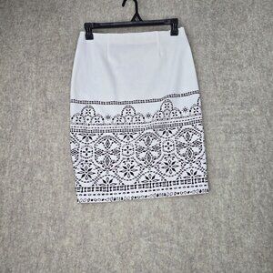 NYCC Womens Black & White Geometric Print Pencil Skirt M Polyester/Spandex