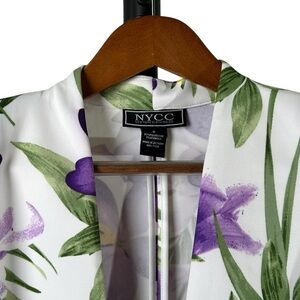 NYCC Women's Small Floral Print Jacket White Purple Open Front Office Career