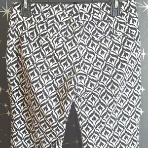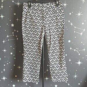 NY&CO Black White Patterned Abstract Mid Rise Cropped Ankle Pants Size 2