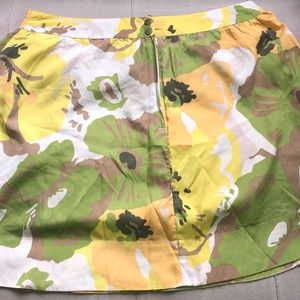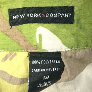 This beautiful NY & Company Circle Skirt features a colorful floral pattern of green, brown, yellow and white. The back has a zipper/button closure and the fabric is very light.