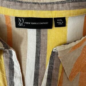 NY&CO Linen Sheath Dress XXL Striped Collared Summer Resort Preppy Classic