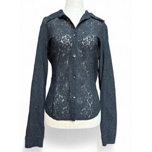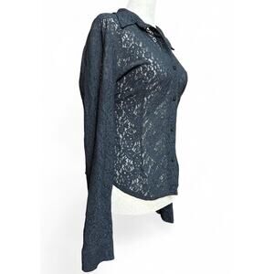 NY&CO Sheer Floral Lace Button Up Top Sz M Slim Tailored Goth Whimsigoth Witchy