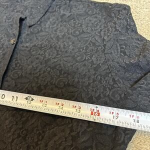Sheer black floral lace button up top with long sleeves. Has a slim tailored fit and collar. Brand is Ny&Co - size medium. Measurements in photos. Nylon/spandex blend. No flaws!