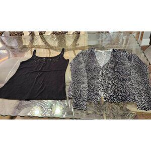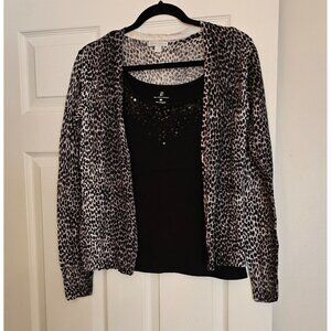 NY&CO Womens Black Tank Top & Leopard Print Long Sleeve Cardigan Set M Romantic