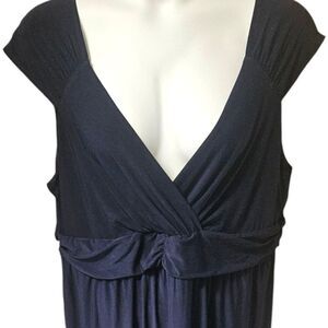 NY COLLECTION Plus Size Ruched Sleeveless Empire Navy Blue Maxi Dress 2X