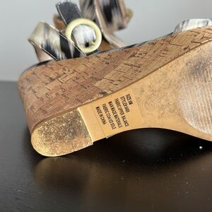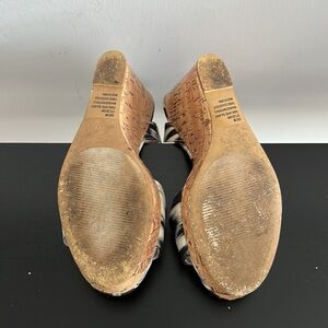 Super cute! Worn once. Also, please note the discoloration on the shoes. The areas that are white appear more of a cream color to me. It is possible that this could be corrected with a good cleaning..