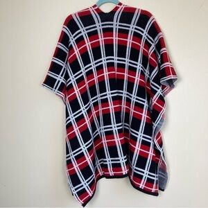 NY&Co Plaid Open Front Poncho Cardigan w Front Pockets Black/Red/White Size M