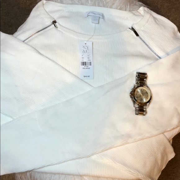 Beautiful Ribbed Sweater with silver zipper details on the shoulders!