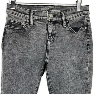 NY&Co Soho Sz 4 Ankle Legging Jeans Black Acid Washed Denim Frayed Raw Cut Hem