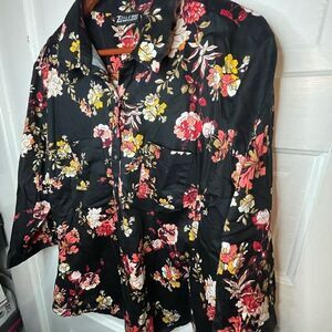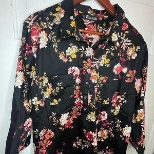 NY&Co Floral 3/4 Sleeve Button & Sleeve Blouse