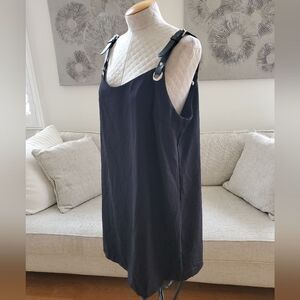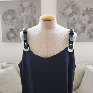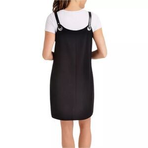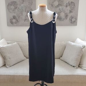 NY Collection's seriously stylish, flowing shift dress accented with chic faux-leather belt straps.