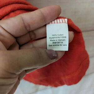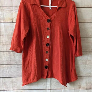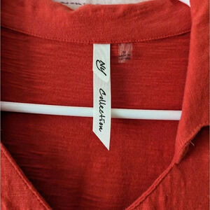 NY Collection Women's Sz Medium Oversized Blouse Hanky Hem Orange Cotton Sleeve
