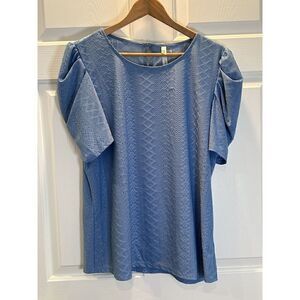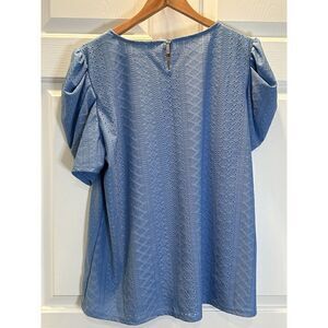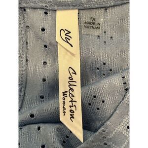NY Collection Blue Eyelet Women's 1X Short Sleeve Top