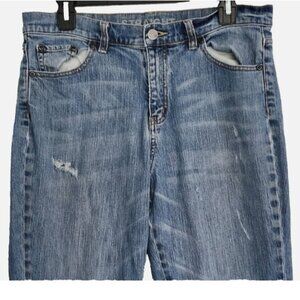 NY&Company Straight Leg Women's Size 10 Tall Blue Denim Distressed Stretch Jeans