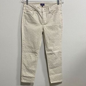 NYDJ 4P Beige Polka Dot Ankle Jeans Stretch Skinny Denim Made in USA