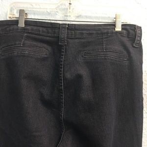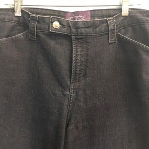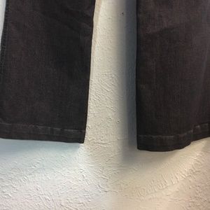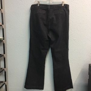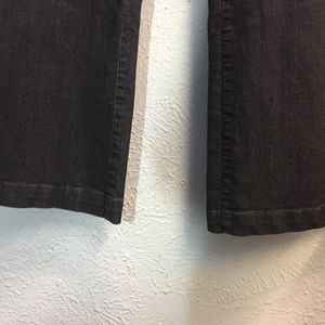 This dark navy wash denim jeans by Not Your Daughter's are probably in a more vintage style. They have the classic boot cut leg and are simple enough to not be distracting. There are not any back pockets. There are no signs of damage though there may be some signs of wear at the hems. Please message with any questions/concerns. 829585