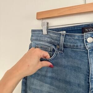 Details: NYDJ Alina Ankle High Rise Denim Skinny Leg Jeans - Size: 10- Color: Blue- Material: - Features: Ankle cut, high rise waist, denim, medium wash, belt loops, zipper fly with button waist, 5-pocket styling, skinny leg, comfort, breathable, casual.