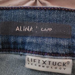 NYDJ's Alina Capri with lift and tuck technology and fancy stitching down each side. Very comfortable pair of jean capris to wear.