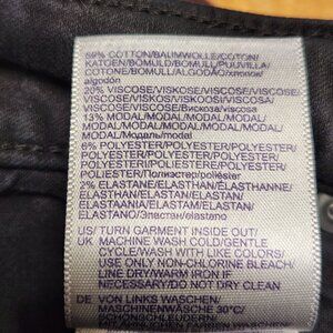 These jeans are in excellent condition. Very clean. Stretchy comfort. No distressing or whiskers. A great basic for any wardrobe.