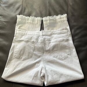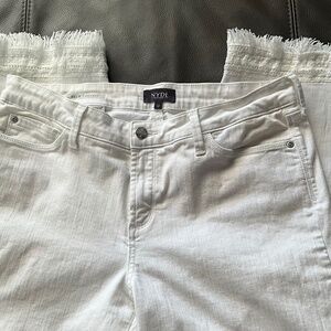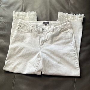 NYDJ BILLIE Ankle Boot Jeans Lace Fringe Hippie Boho Stretch LiftxTuck White 12