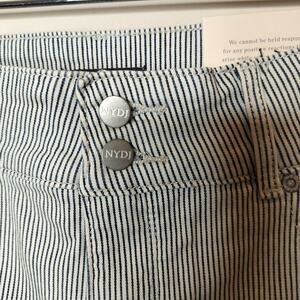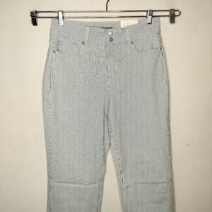 NYDJ Bailey Relaxed Crop Roll Hem Jeans. Striped white / indigo blue. Size 10. Cotton spandex. (22682)