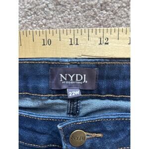 The NYDJ Barbara Bootcut Blue Jeans in size 22W offer a stretchy and slimming fit, perfect for the modern woman. Made from a denim fabric blend with added stretch, these jeans feature a classic 5-pocket design, ankle length, and belt loops. The dark wash and solid pattern give them a versatile look, suitable for the winter, fall, and spring seasons. With a zip closure and branded logo accents, these NYDJ jeans combine style with comfort, making them a must-have in any woman's wardrobe.