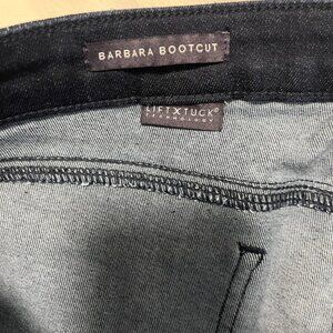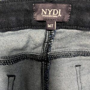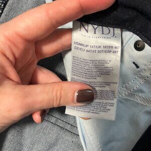 NYDJ Barbara Bootcut Dark Blue Jeans Size 14 Tall. Dark blue wash. Classic button & zip fly closure. Two front & back pockets. Classic bootcut fit/style. Full pant length. Stretchy material.