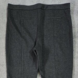 Good used condition, with no stains or tears. Comfortable heather grey ankle pants, with front and back seams. The ponte knit fabric has stretch. Has lift tucky tummy control technology and a zip fly/hook closure.