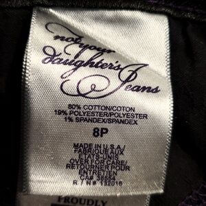 Not Your Daughter's Jeans mid rise black denim straight leg jeans embellished with crystal studded back pockets. Light wash fading, generally in good pre-owned condition.