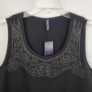 NYDJ Black Tank Top Embroidered Yolk Flowy Size S NWT