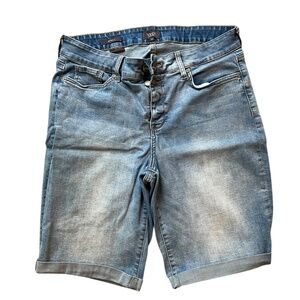 NYDJ’s Briella 11 Inch Denim Shorts with Roll Cuffs in Heyburn Wash are the comfortable, fuss-free, ultra-flattering style you’ll practically live in on days off, or dress up for a casual cocktail hour. A generous inseam gives you just the right amount of comfort and coverage for active days. Rolled cuffs at the mid-thigh are a playful finishing touch. These slimming shorts incorporate our signature Lift Tuck® Technology for a trimmer figure. Right-size, classic five-pocket styling flatters your curves