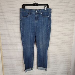 NYDJ CURVES 360 W BOOST ROLLED ANKLE JEANS IN JACKSON MEDIUM BLUE WASH, SZ 10