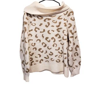 NYDJ Chunky Cow Neck Cream Chetah Size Small Oversized Cozy Cotton Blend