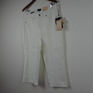 NYDJ Cropped Jeans Women's Plus Size 14W White Stretch Denim Marilyn Straight