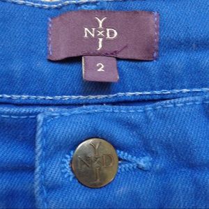 NYDJ Cuffed Capri Jeans in blue. Five-pockets, zip-fly and button fastening. Size 2