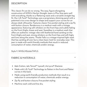 NYDJ Curves 360 Shaper Marilyn Straight Leg Stretch Denim Jeans Thistle Falls 14P Nwt