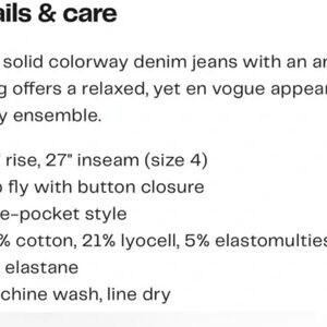 Side slits with rivets; zip fly and button closure; five-pocket styling
