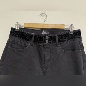 Features a paisley velvet design at the waist with double button closure; LiftXTuck Technology