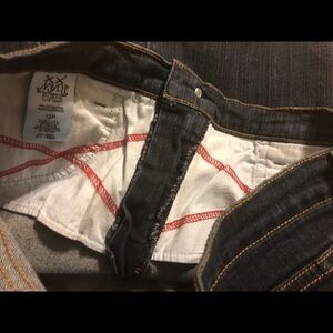 Nice NYDJ Dark Denim Stretch Jean With Tummy Skinny Panel. Size 12P. Style #P700. Mid rise. Button/Zip Closure. Classic 5 pocket style. Boot Cut Hem. EUC. Free of stains/holes. No fraying.