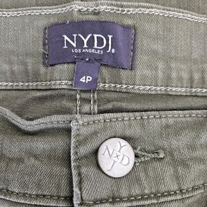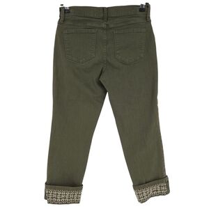 NYDJ Dayla Wide Cuff Capri Jeans Olive Green Embroidered Denim Petite 4P