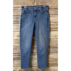 Chic cropped jeans by NYDJ. Features intricate embroidery on back pocket. Ideal for everyday style.