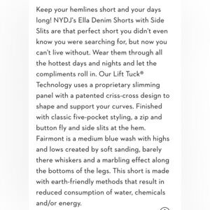 NYDJ ELLA BLUEWELL WITH SIDE SLITS JEAN SHORTS 9” INSEAM NEW WITH TAGS