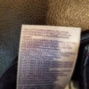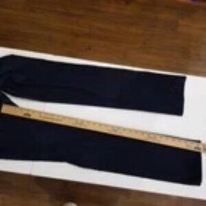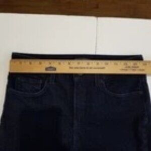 Inseam 32-1/2"; waist 14" flat across the front; mid rise 8-1/2-10/1/2. Cotton blend, five pocket jeans in excellent condition. There are no visible signs of wear. I bought these for myself but they are a bit snug and I can't return. Bummer because they are the dark rinse that I have been looking for. Dark blue and black colors are difficult colors to capture in photos.