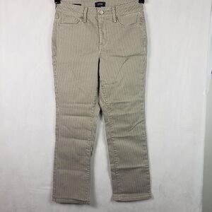 NYDJ Ellison Tall Jeans Womens 6T Beige Lodge Stripe High Rise Straight Ankle